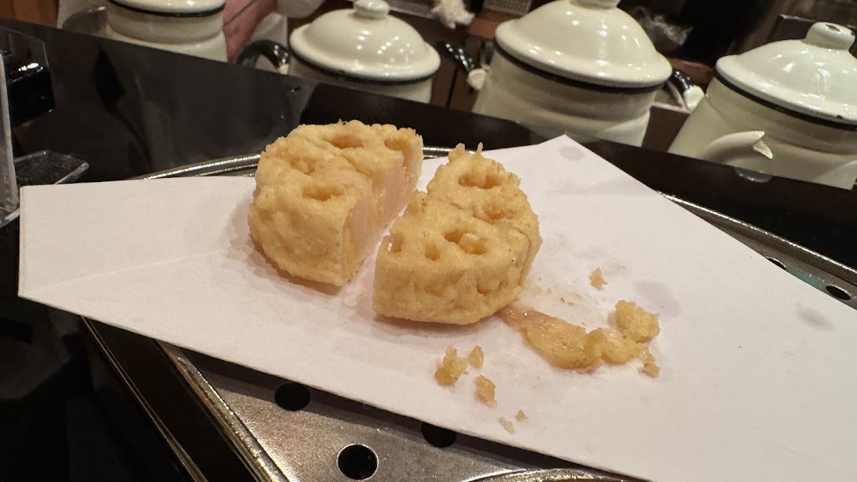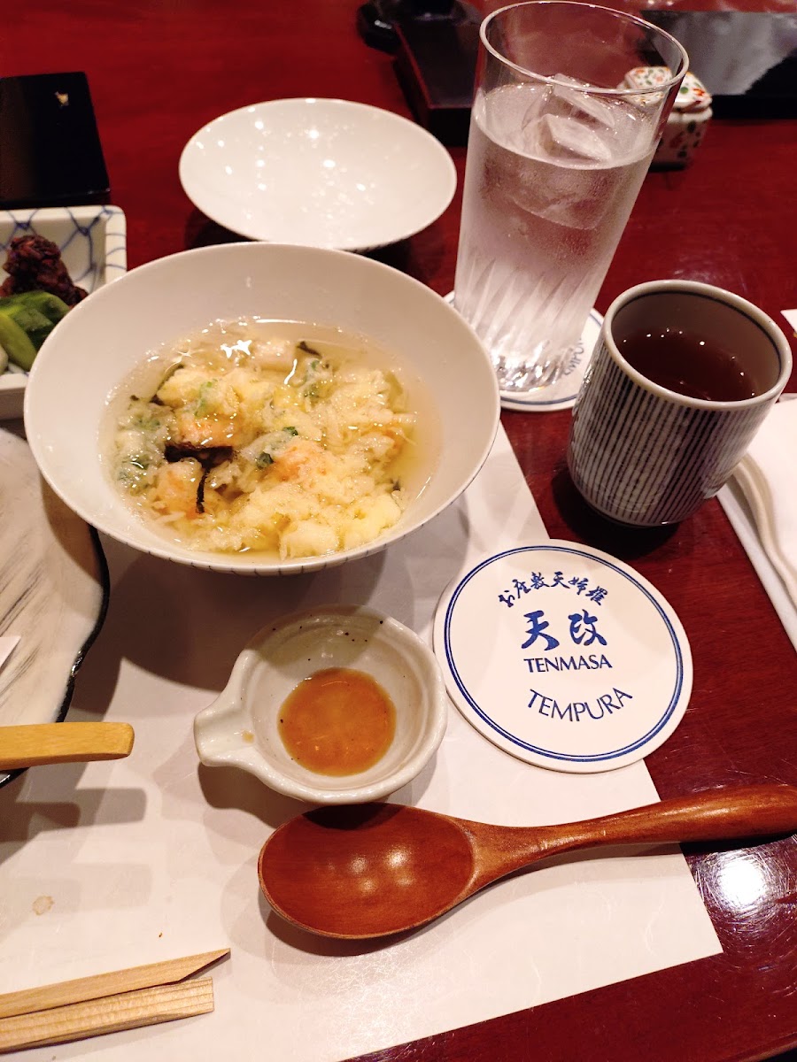 When it comes to signature dishes, Tenmasa Tokyo excels in providing authentic and mouthwatering tempura creations that stand out. One must-try dish is the 天ぷら茶漬け (Tempura Chazuke), a unique blend of crispy tempura served with a light and flavorful broth, elevating the tempura experience to new heights. Another standout is れんこんの天麩羅 (Lotus Root Tempura), offering a perfect balance of crunch and tenderness that tempura lovers crave. For a refreshing start to your meal, don’t miss the お造り (Sashimi), featuring fresh, expertly sliced fish that complements the rich flavors of the tempura.