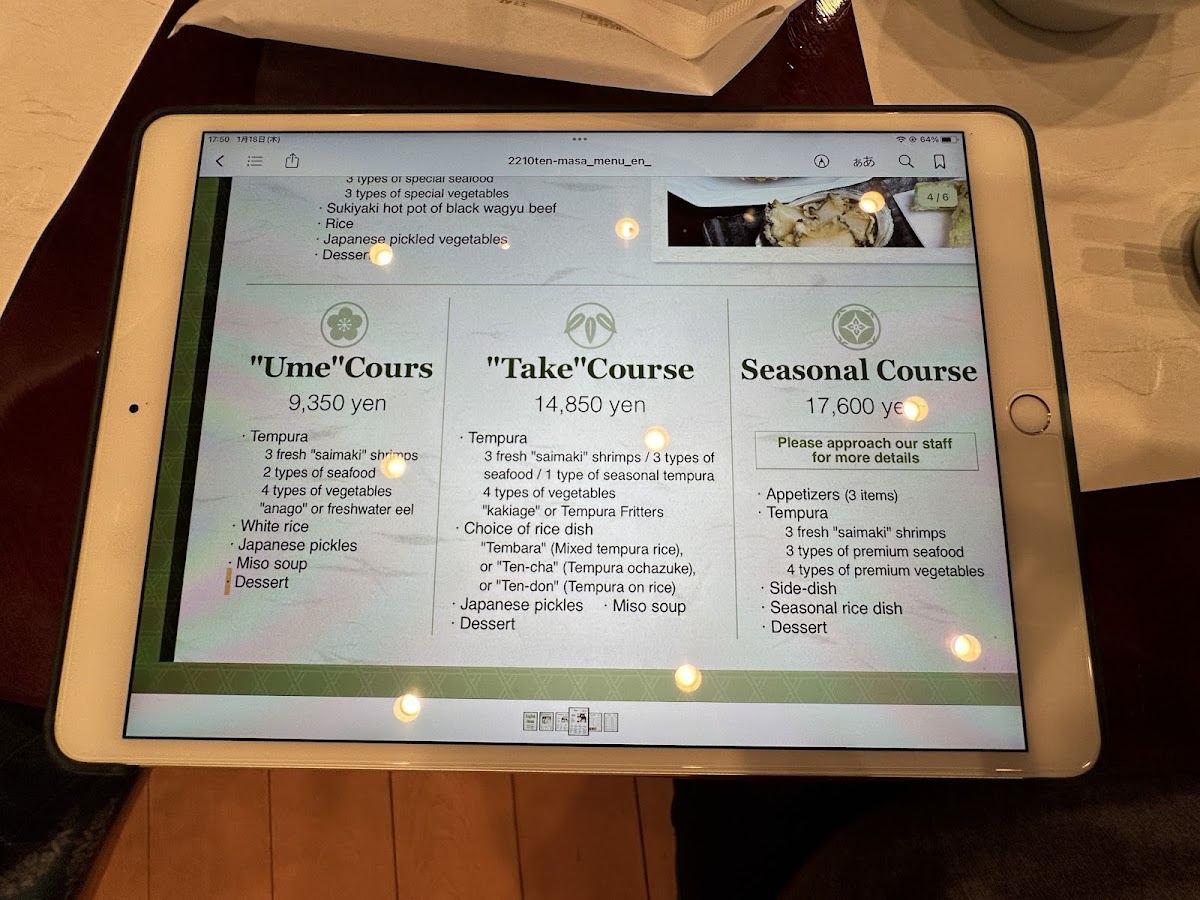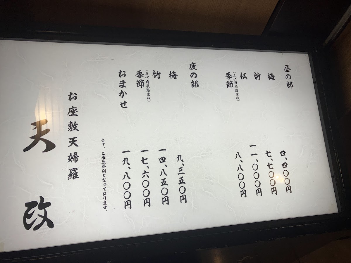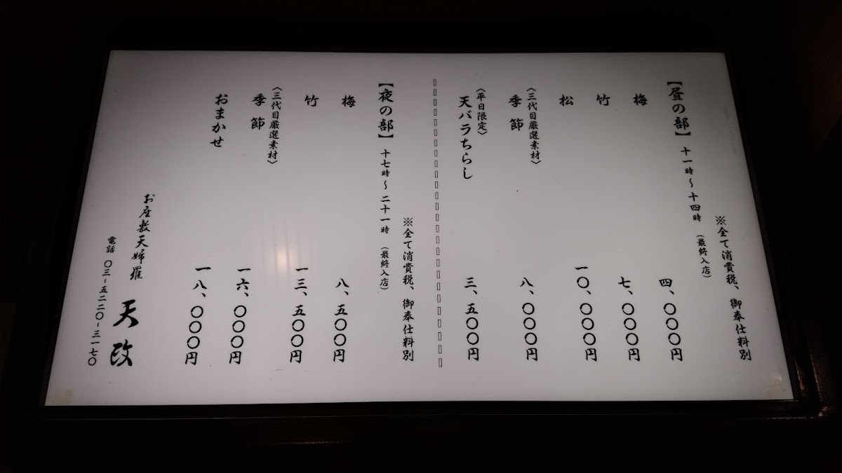 From a reviewer’s perspective, the lunch menu at Tenmasa Tokyo in the Marunouchi Building feels deliberately restrained, focusing on quality rather than quantity. The daytime offering centers on a single highlight, お刺身, which immediately sets expectations for freshness and precision. This choice reflects a confident culinary philosophy: instead of overwhelming diners with options, the restaurant lets expertly prepared sashimi speak for itself. The fish is presented with a clean, elegant simplicity that emphasizes natural flavor, texture, and seasonal balance-qualities that are especially appreciated in a refined business district like Marunouchi. As a conclusion to the menu overview, Tenmasa Tokyo’s lunch selection leaves the impression of a restaurant that understands its strengths and caters to guests who value authenticity, craftsmanship, and a calm, focused dining experience over excess.
